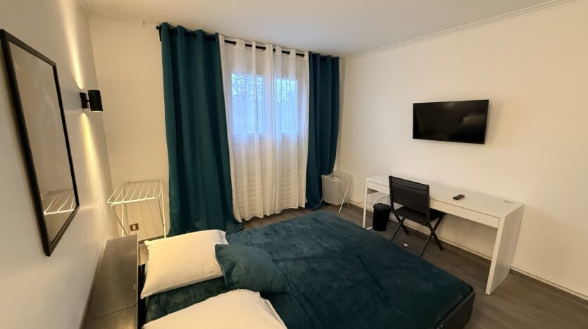 Elle dispose d’un lit Double confortable, d’un grand bureau pour étudier ou télétravailler, ainsi que d’espaces de rangement pratiques.