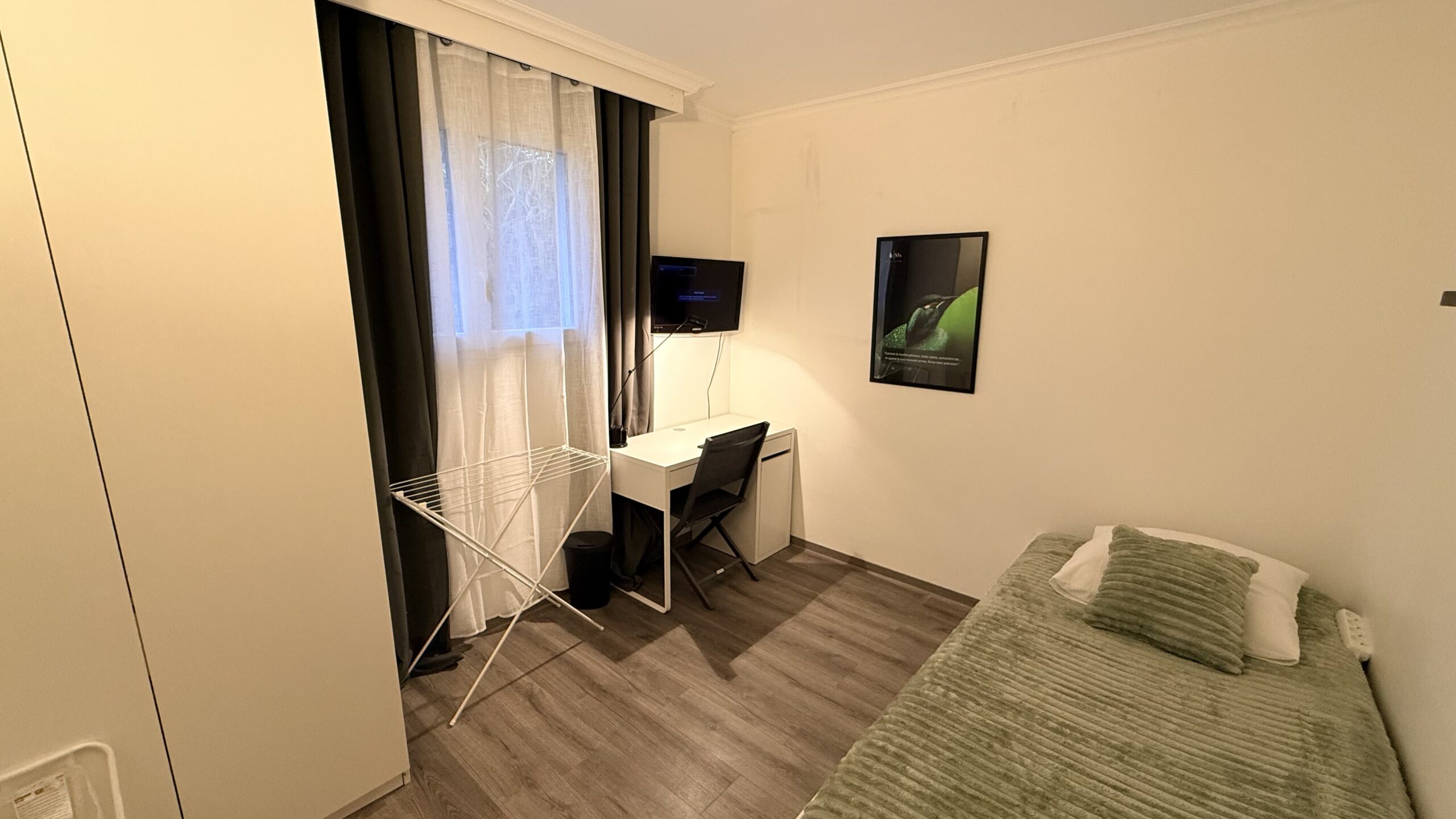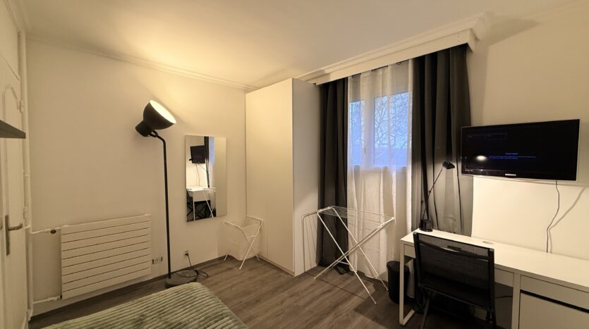 Elle dispose d’un lit Double confortable, d’un grand bureau pour étudier ou télétravailler, ainsi que d’espaces de rangement pratiques.