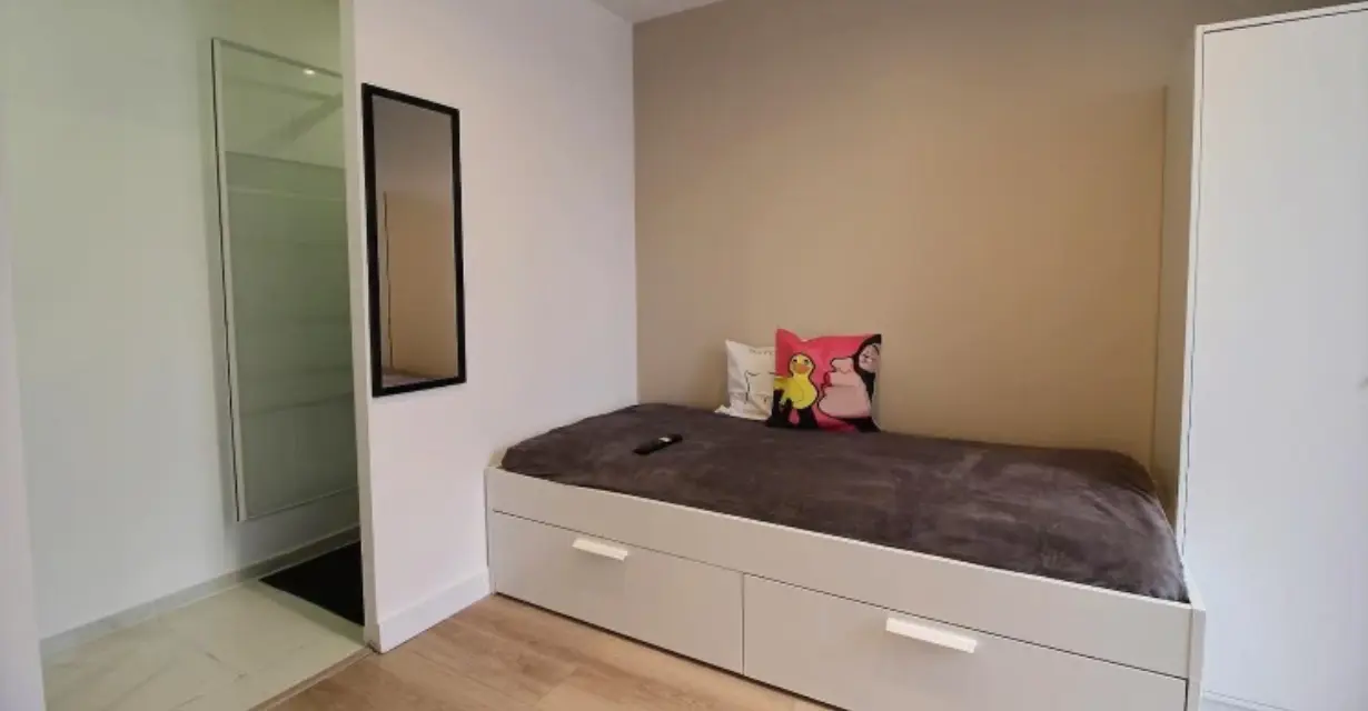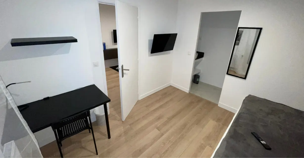 La chambre est située dans un appartement moderne et spacieux avec cuisine ouverte sur salon, idéal pour allier vie en communauté et indépendance personnelle.