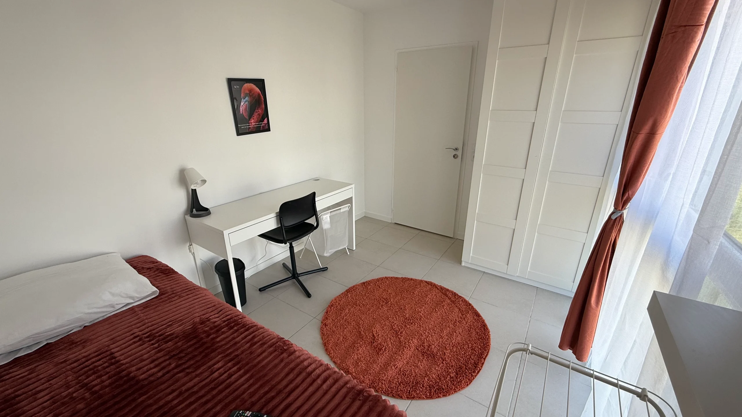 Bienvenue dans cette agréable chambre rouge, située au RDC d’un grand duplex avec terrasses.